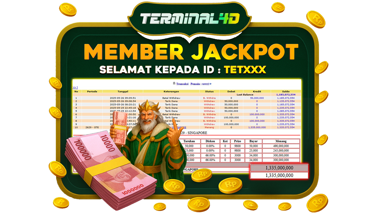 TERMINAL4D kini hadir mempersembahkan link situs slot gacor online pasti maxwin hari ini dengan server slot777 resmi serta slot88 terbaru yang gampang menang. Permainan ini telah tersedia sebagai slot88 resmi dengan lisensi PAGCOR dengan fitur slot terkini dari berbagai provider slot serta memberikan pengalaman bermain slot terseru seperti Pragmatic Play, PG Soft, Joker Gaming, Habanero, Nolimit City dan masih banyak lagi. Sebagai salah satu situs slot gacor terbaru dan terbaik di Indonesia, tentunya situs slot777 ini juga menyediakan server khusus Hongkong, Vietnam, Thailand, dll. yang membuat para bettor akan semakin merasa sayang ke platform ini. Tingginya RTP dan APK Slot yang mudah bocor juga menjadi alasan terbesar para pemain yang bermain di situs slot gacor hari ini. Tak heran TERMINAL4D dicap sebagai link situs slot terpercaya dan terbaik tahun 2025 ini. Dengan banyak nya keunggulan tersebut, situs judi slot online gacor ini semakin mudah diakses dan dimainkan tanpa ada nya settingan secara langsung karena lisensi yang sudah terverifikasi. Dengan begitu, jangan ragu untuk langsung daftar dan bermain hingga maxwin saat pertama kali deposit minim.